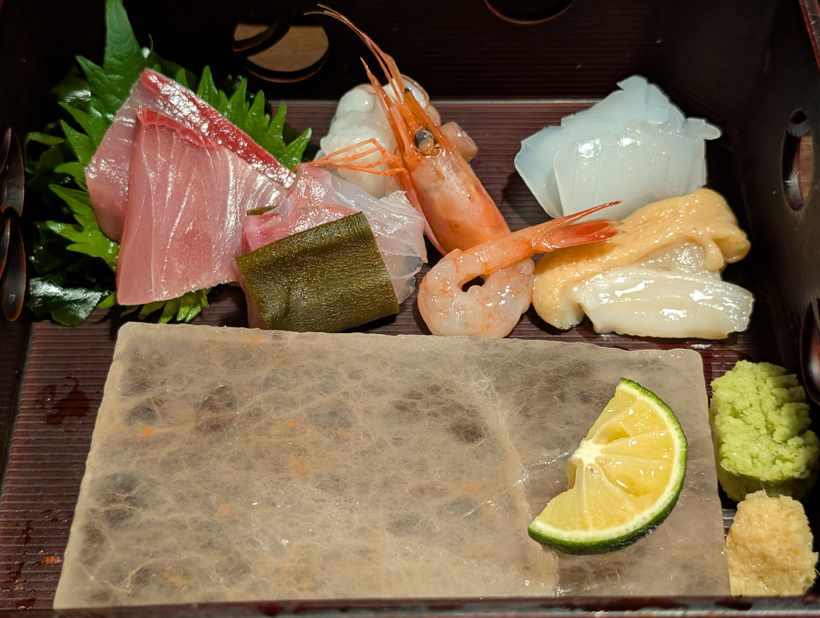 お刺身を岩塩プレートで
