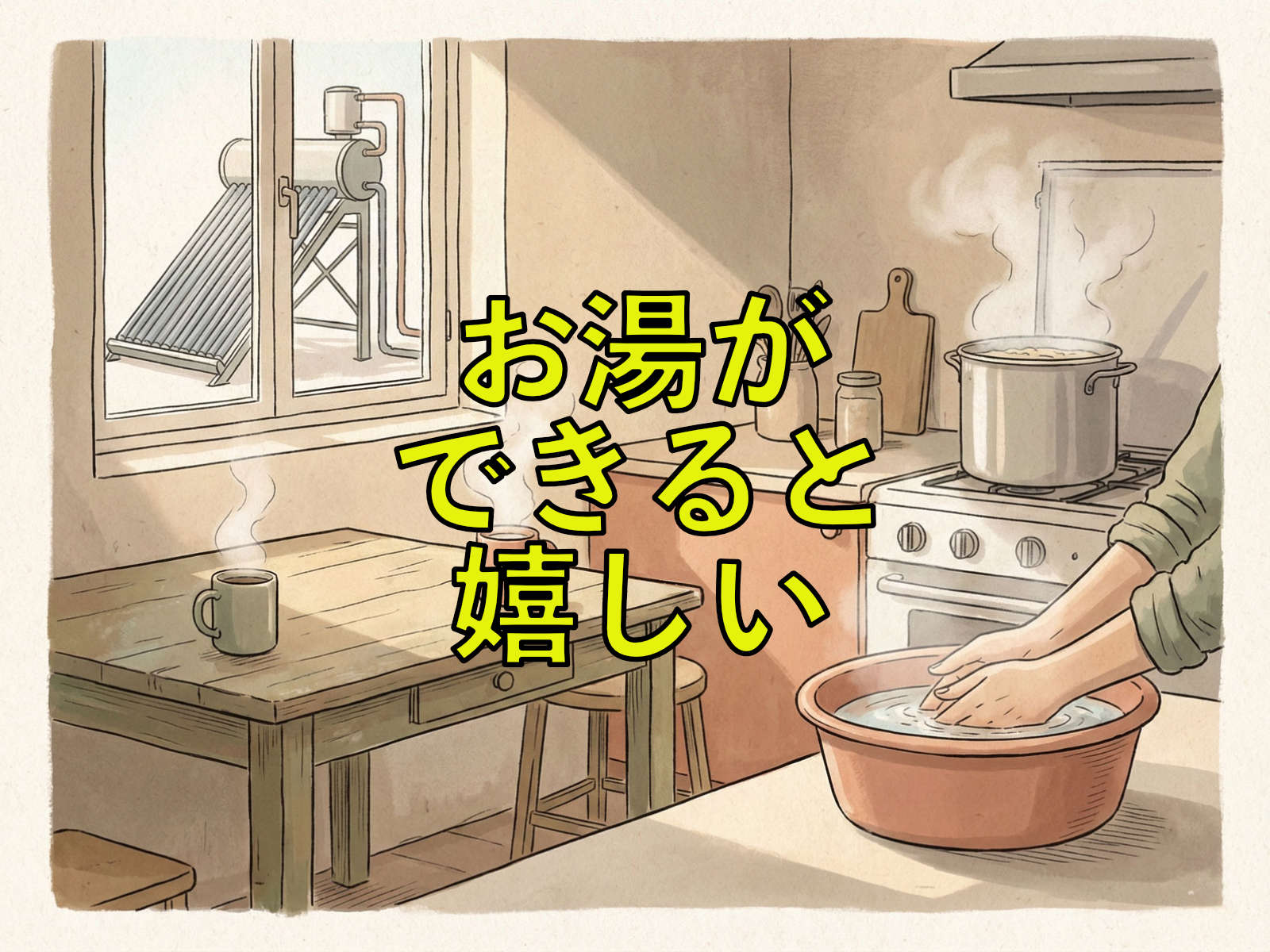 電気よりも変換効率がいいとか(熱は熱のまま使うので)、設備投資してからの回収が早い、ということもありますが、純粋に「太陽のチカラでお湯ができると嬉しい」ということも大きいかな。