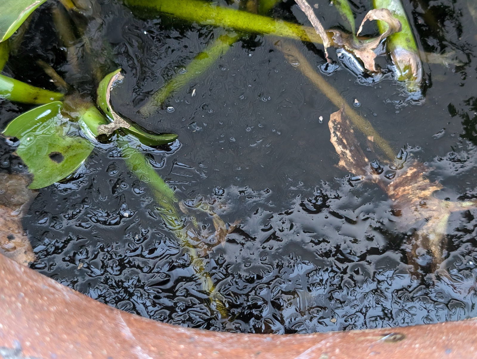 アメダスの記録では今朝の最低気温が-0.3℃、メダカの鉢が、今シーズン(たぶん)初凍結です。