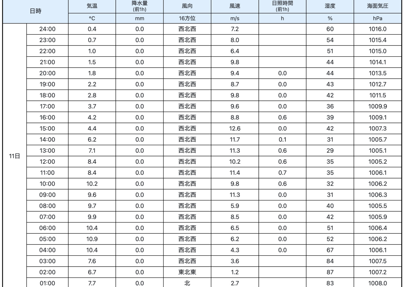 平均風速で10m/s(傘が無理なやつ)で、最大瞬間は23.0m/s。