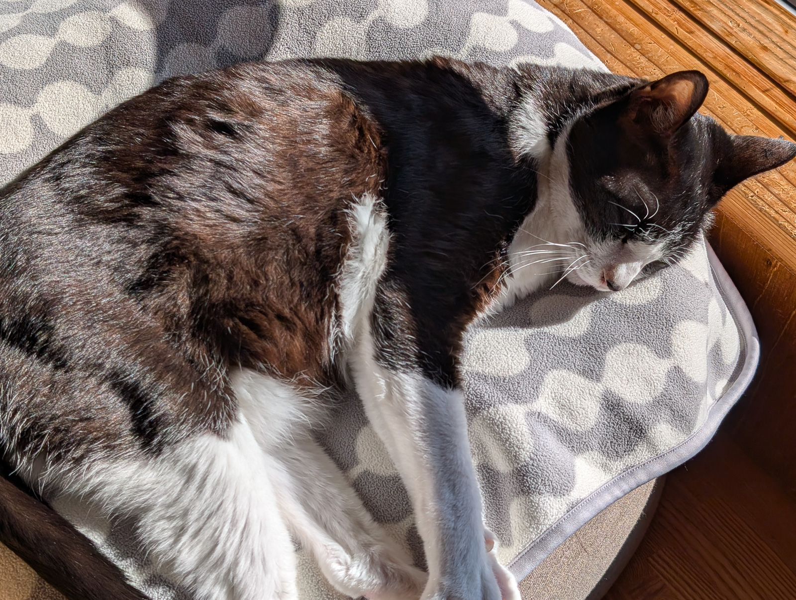 外は寒くても陽が入ると暖かい、というのは猫様はよくご存知でいらっしゃいます。
