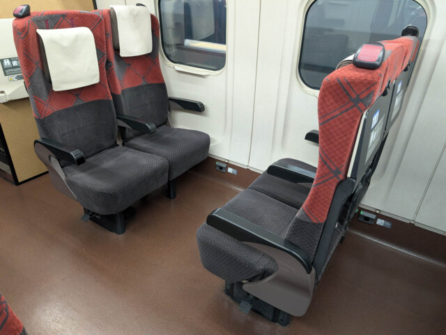 これなら、席を回さずに、前を向けたままにしたほうが、全員が進行方向を向けて足も伸び伸びできるし、リクライニングもできる、なんならテーブルだって使えるし。