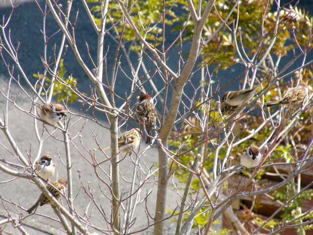 スズメもきます。スズメなんて珍しくないだろ…ってこともなくて、最近だと、メジロよりスズメの方が少ないかも?
