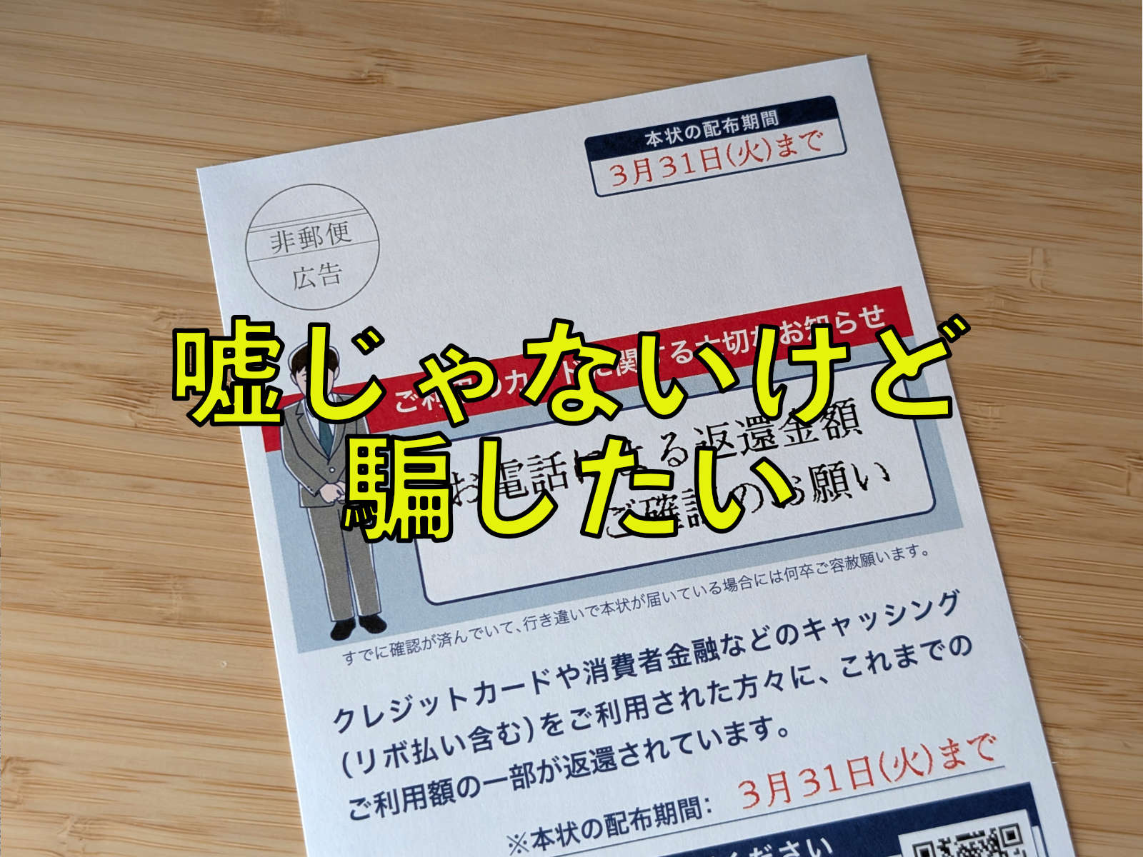 「本状の配布期間 3月31日(火)まで」という赤い帯。