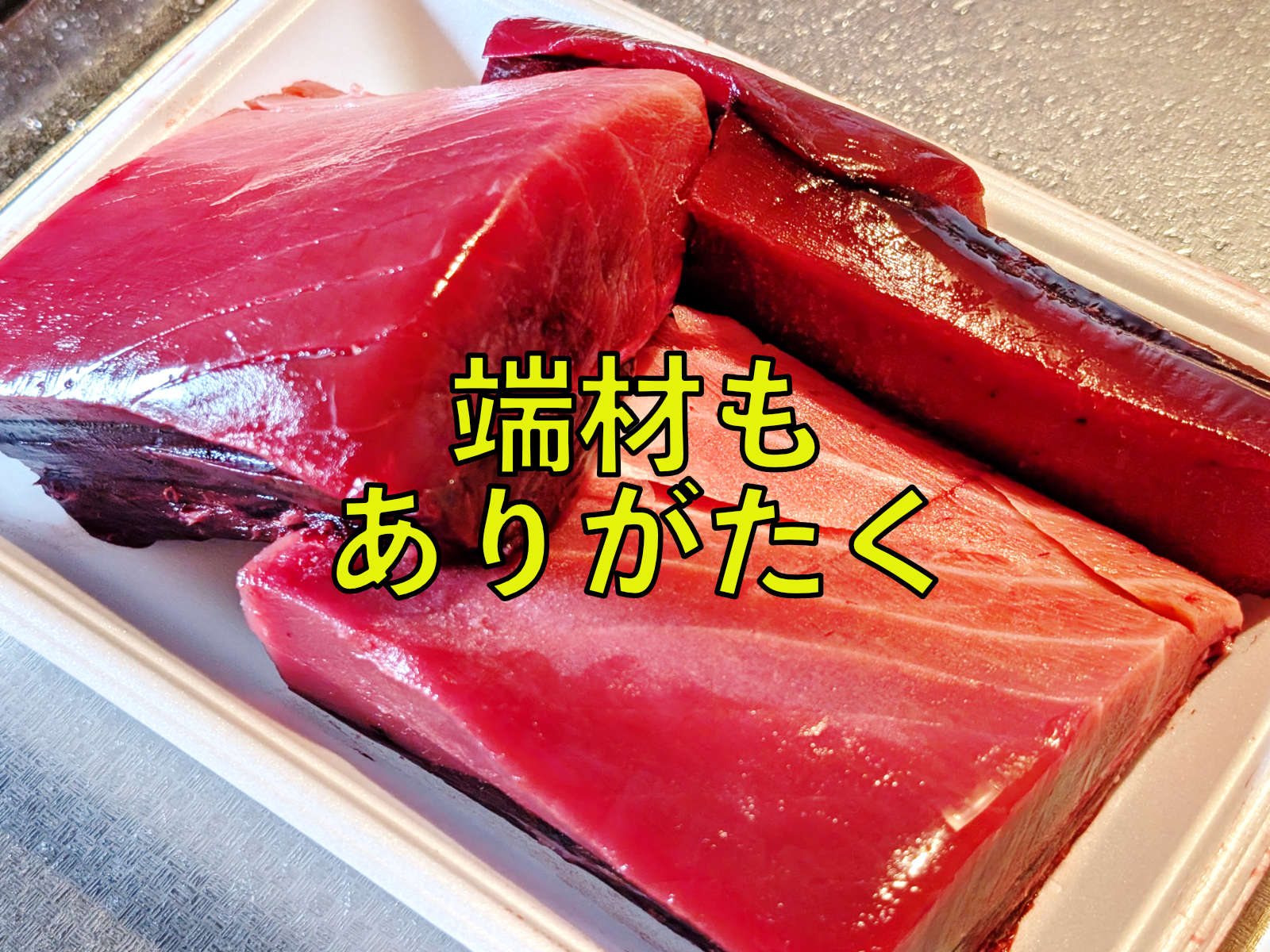 スーパーで一般的に売っているのはサクや切り身で、それらを切り出した残り、みたいなわけですが、裏を返せば刺身で出せるぐらいの鮮度、なんだと思う(焼いて食べたけど)。